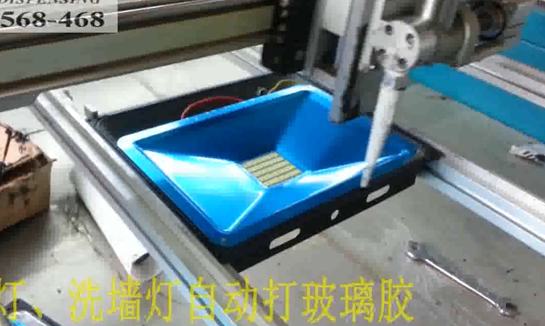 Put the work-piece on the moving platform by the designed fixture, the working platform and gluing nozzle move as programmed track to coat the work-piece accurately by compressed air.