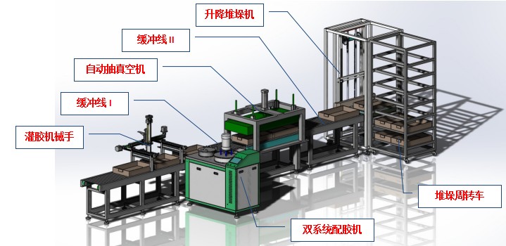 双组份环氧树脂自动灌胶设备_非标定制倍速链生产线_支持抽真空脱泡工艺
